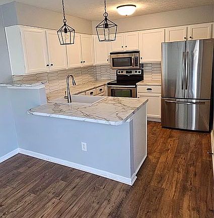 This condominium shows GREAT! Move in condition, lovingly maintained. Step inside to a 2 story foyer which offers a coat closet, hardwood looking flooring and a window above. Opens to the spacious Living Room which has neutral carpet, ceiling fan, bay window, gas fireplace with mantle and trimmed in white. Super kitchen and breakfast area. Hardwood type flooring, pantry, ceiling fan, cozy breakfast area, lots of cabinetry, breakfast bar, stainless steel appliances including microwave. Sliding glass doors to charming privacy fenced enclosed patio with grass, plantings. Perfect for a cookout setting. 1/2 bathroom on the first floor with hardwood flooring and pedestal sink as well. The stairs leading upstairs, the landing and the two bedrooms have neutral carpet. The Primary Bedroom like the rest of the home is a Nice size, ceiling fan, storage room off the PBR, a nice size walk in closet. Full bathroom with hardwood flooring, cherry vanity and jetted bathtub. Second bedroom offers ceiling fan and double closet. One car attached garage. This condo offers a great location so close to everything.