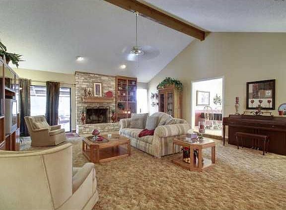 Single-story home on 3.75 acres with lots of Extras! Great country home with plenty of room to spread out. Nice open layout with a very spacious living with gorgeous stone fireplace & built-ins. The kitchen has ample counter & cabinet space and opens to the light & bright breakfast area. Huge master suite! The enclosed back patio is great for entertaining or just relaxing after a long day. The metal garage is enormous with 3,750 sqft. Use it for parking, storage, a workshop, etc.