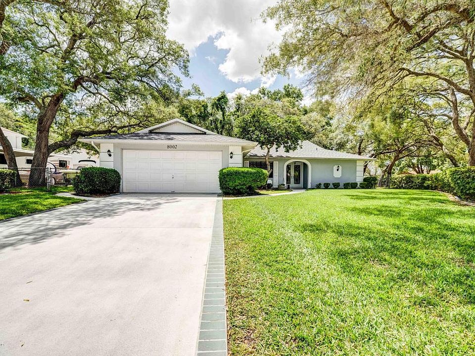 Beautiful move in ready three bedroom, two bath home in Spring Hill. This home features vaulted ceilings, solar tubes, built in bookshelves, plant shelves, updated kitchen with breakfast nook, updated baths, indoor laundry, with tile and laminate wood throughout. The master suite features dual sinks, vanity and walk-in closet. Enjoy the almost half acre fenced yard with mature landscaping from the screened in lania. The detached workshop adds even more usable space with electric and a window unit. Rainbird irrigation system hooked up to the inground well. Call today for more information!