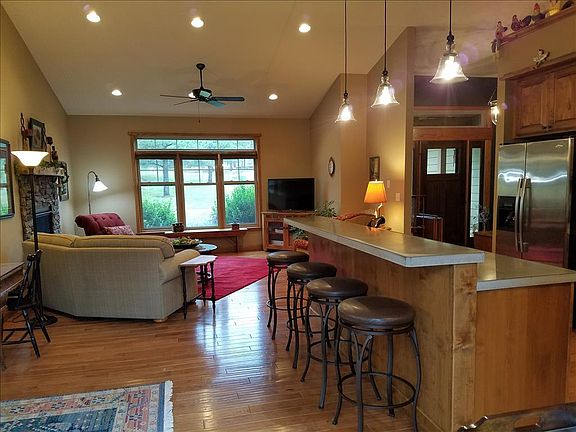 Here is an opportunity to have some space close to town. Custom home built by Bodensteiner Construction. Entering this home one is met with 4" Hickory Hand-scrapped Floors throughout the main living area. The kitchen is stunning with Knotty Alder Cabinets, Concrete Counter-tops, Stainless Steel Appliances, Breakfast Bar, Titled Back-splash and Custom Lighting. A Gas Fireplace in Living Room with Rock Backing. Wonderful Master with Double Sinks, Jetted Tub, Tiled Shower, and Walk-in Closet. Main floor also features an office with built in organizers. Large Redwood Deck with Steel Railing. 2 Bedrooms in Lower Level with Large Family Room and Craft Room. Electric Heat Pump and extra insulation around foundation. Drip System to plants, Large Lot. This home has it all.