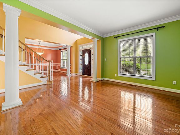 Welcome to this brick two-story home situated in the charming town of Matthews, overlooking a pristine golf course. Step inside the grand foyer, where hardwood floors lead you to the heart of the home. The main level features a seamless flow between the living spaces, including a spacious living room, a formal dining area, & kitchen. The den boasts large windows that bathe the space in natural light, while a cozy fireplace creates a warm atmosphere. The large kitchen is complete with granite counters, tons of cabinetry, & an island for casual dining. The adjoining breakfast area provides a perfect spot to enjoy your meals while overlooking the course. Upstairs, the spacious master suite awaits, with its separate sitting area/office. The en-suite bathroom is complete with a soaking tub, a walk-in shower, dual vanities, and ample closet space. The additional bedrooms are spacious and there is a large bonus room that could be used as a bedroom.