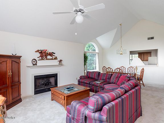 You don't want to miss out on this 3 bedroom, 2 1/2 bath patio home situated at the end of a quiet cul de sac! Imagine spending your mornings and evenings relaxing on your private deck with views overlooking the nearby pond. When you enter the home you will notice the soaring vaulted ceilings and large windows that allow tons of natural light to flow throughout the home. The living room and dining area are open to each other and there is a pass through to the kitchen which gives this home an even larger feel. The primary bedroom is located on the first floor and boasts a huge en suite bathroom with a shower tub combo as well as a separate walk-in shower. The second bedroom, laundry room, and half bath are also located on the first floor. Upstairs you will find the 3rd bedroom complete with
