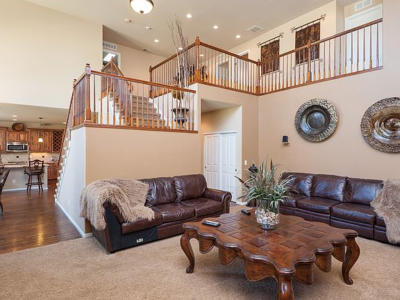 Elegance and Class at their best! Enjoy this Pristine 2-story home in In the Heart of The Villages of Riverdale. This Unique beauty is close to 5000 finished square footage is unique and gorgeous, not many homes with this size. It's the perfect entertaining house! The Kitchen is a masterpiece, with a Chef's kitchen feel, Gas range/cooktop, double oven, desirable large granite countertops/granite island, and 42-inch Cabinets, perfect for large gatherings. This Stunner has a loaded remodeled basement, Finished basement bar, basement great room, and Media/Theatre Room ( Sound system ) with cozy 9-foot basement ceilings. Enjoy the huge spa-like 3/4 basement bathroom (walk-in shower) and bedroom in the basement, perfect for guests. The home is loaded with upgrades galore. You will be excited to view the great room/living room on the main floor in addition to elegant 18-foot ceilings and custom Drapery that also opens to the loft. Enjoy the south-facing prestigious front Office room, Fancy dining room, and eating space. Unique and cute "Teenage suite" upstairs, Spacious Master bedroom/bath, walk-in closet with some upgrades, 3rd bedroom upstairs with bathroom attached, Low Maintenance yard, hardwood floors, ceramic tile, beautiful carpet, Custom entertainment center, in the family room, 6-panel doors, Oak Staircase, 3 car garage with 12-foot ceilings and service door, Chill on the Calming Covered back patio porch, Pretty window coverings as the list can go on and one. Turnkey and ready to go! The square footage also goes on and on with a dedicated basement storage space.