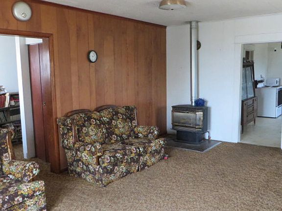 This property needs TLC but has SO much potential! There are 2 bedrooms plus another that has an on-suite bath but has no window. The downstairs bedroom has an exterior door with ramp access. The 2nd bedroom is upstairs, and remainder of attic area has high ceilings with potential to be finished for more living area. This home is heated with a natural gas space heater. The 24'x 25' two-car garage lacks some siding, windows and garage doors. There's also a large metal sided pole barn for RV's, boats, etc. The fenced open ground below the house is great for farm animals. BEAUTIFUL VIEW of the farmlands to the south.