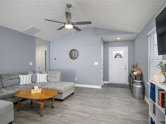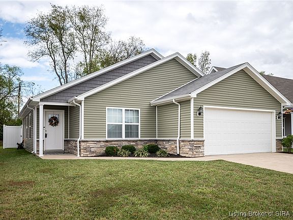 Welcome to this well-maintained, move-in-ready 3 bedroom, 2 bath home in Charlestown, Indiana. Built in 2020, this home features an open concept floor plan with a spacious family room that flows into a custom-modified kitchen. The owners added a large corner pantry and extended the seating area with a peninsula, perfect for casual dining. The kitchen includes stainless steel appliances, all staying with the home, and a recently replaced microwave.
