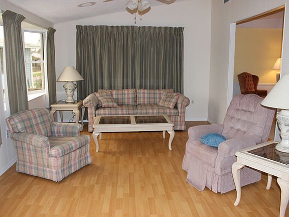 1/12/16 - Reduced to $33,000 TURN-KEY FURNISHED! JUST BRING YOUR SUITCASES AND START LIVING THE FLORIDA LIFESTYLE! Own this home for $39,995 or rent seasonally or annually. This home has all the renovations you want! New roofover-October 2013 New energy-efficient windows August 2013 Renovated kitchen with solid wood cabinets, solid surface counters, and top-of-the-line appliances-November 2013 New carpet in bedrooms-July 2015 New laminate in living room and Florida room-July 2015 Screened lanai June 2013 Not to mention the sellers have purchased a HOME WARRANTY to cover all the home's components for your first year - including the air conditioner! This 2-bedroom 2-bath triple-wide home with nearly 1600 sq ft under air sits on a corner lot on Long Lake in Colony Cove, the Ellenton 55+ community ranked "Best 55+ Community" by the Herald Tribune for several years. The open floor plan features a large kitchen overlooking the living room and dining room, and a large Florida room overlooking the lake through nearly twenty feet of bay windows. Common areas have laminate while the bedrooms are carpeted. The new kitchen features solid wood cabinets, a bottom freezer- refrigerator, a cooktop stove , a Whirlpool above-the-range microwave oven, and a dishwasher. Storage in this house is phenomenal! Both bedrooms have walk-in closets plus additional closets in the hall and bathrooms. The double shed is complete with a workbench and shelving, in addition to the laundry. The kitchen has two pantries. The large number and placement of windows creates great cross-ventilation from October to April when the temperate weather allows for open windows to feel the gentle breezes off the lake. Start enjoying the Colony Cove active lifestyle today with 5 swimming pools, 5 clubhouses, 2 fitness centers, off-leash dog parks, tennis courts, shuffleboard, community garden, fishing pier on the Manatee River, on-site RV & Boat storage, a marina, and a variety of clubs and activities. The home is being sold turn-key furnished - just bring your suitcases and begin enjoying the lifestyle Colony Cove is famous for providing. Come see this fabulous home and make an offer the owners can't refuse. You'll love the community, this neighborhood, and your new home so much you'll want to stay year-round! Available for sale at $39,995 and listed by Sue Shields of Tropical Mobile Homes. Sue can be reached at 941-779-6262. Home is for rent seasonally, January to May, for $1900/mo plus tax and includes electric ($150 credit), cable television, and local phone service, plus all the resident amenities at Colony Cove. There is a $50 application fee per person for Colony Cove ELS Management, plus a $50 background check performed by the owners. Security deposit is one month's rent. Long-term rental is also available for annual lease at $1400 per month. Tenants on an annual lease are required to provide and pay for all utilities (electric, cable, and telephone). An ELS Colony Cove application fee of $50 per person is required of all tenants occupying the property and a $50 background check fee per person is required by the owners. Security deposit is equal to one month's rent.
