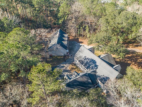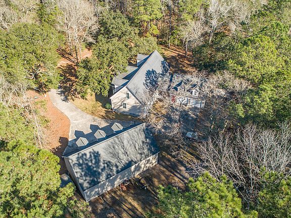 Imagine sitting on your southern front porch enjoying 6.95 Acres under beautiful, stately live oaks.2 Story Traditional House has a wonderful layout with open spaces, large kitchen with an Island. Master brm & bath are down. Along with a guest brm & full bath. A lg. laundry rm. situated away from the living spaces. Upstairs are 2 more bedrooms, a center loft/media rm. with a full bath & storage. Attached on the back of the house is a 2-car garage with unfinished storage up. Also on the property is a 3-bay workshop/garage, 1 bay is 12' & stairs to an unfinished rm. The property has a well, septic & a 400-amp service. Plenty of privacy & beauty awaits you as well as close enough to groceries, schools, churches & main hwys. without living in the middle of the hustle & bustle.