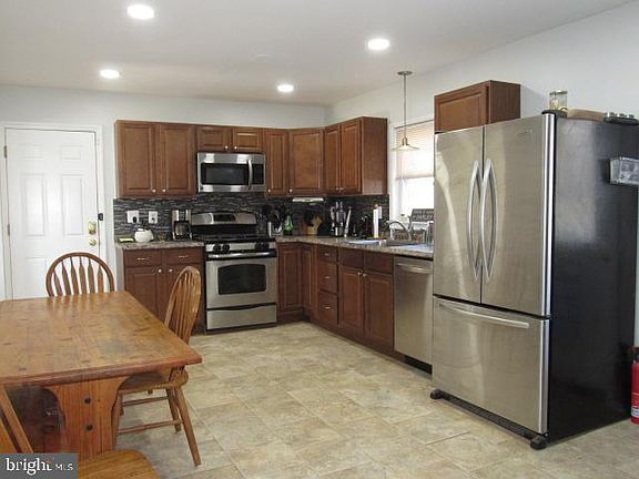 Nicely updated 3 level home with a stone front, 2 car garage, 16 X 16 rear deck, patio and situated on almost half an acre. The rear yard is fenced and has a 14 X 10 Shed. There is a newer roof with architectural shingles, vinyl siding, double pane windows vinyl windows and gutters. There is a remodeled country kitchen with upgraded cabinets, stainless steel appliances, recessed lights counter tops and flooring. There are 2 barn doors on rails separating the kitchen and living room with recessed lights. The flooring has been upgraded to hardwood floors on the upper 2 levels. The basement has a family room, den and large utility/storage room. There is a stream/creak going through the property but on the outside of the rear fence. Seller will provide a 1 year CHOICE HOME WARRANTY.