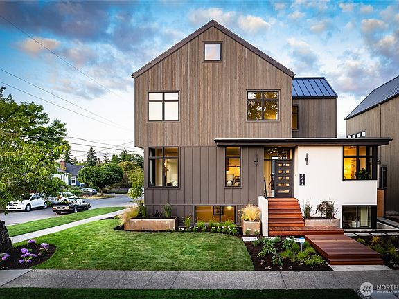 Welcome to cutting edge new construction built with elegant proportions, gorgeous finishes, & exceptional detailing tailored around a tasteful combination of Scandinavian New Modern & Japandi design. Mahogany decking leads through the glass & steel entry to the phenomenal great room w/ wide plank floors, large windows, custom fireplace, spacious dining, & a world-class kitchen! Custom glass-railed stairs ascend to the vaulted-ceiling primary suite w/ 5-piece spa bath & paired walk-in closets. There's 2 more bedrooms, a full bath, & 3rd story bonus room. Downstairs is a large rec room, wet bar, guest bedroom, 3/4 bath, & lots of storage. A MIL/DADU, oversized 1-car garage, lovely landscaping, & Cascade views complete this unique opportunity!