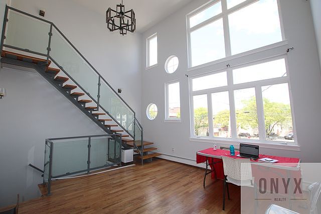 Rare find! Private sun-drenched duplex loft style apartment with 20 foot high ceilings! Gorgeous window exposition allows light through out the space. There are two full bathrooms, 1 balcony and one large terrace. (Terrace is currently being renovated) Generous closet space and real wood flooring. Small pets are ok. Short walk to Halsey L-train station. Call & text & email for appointments or more information.