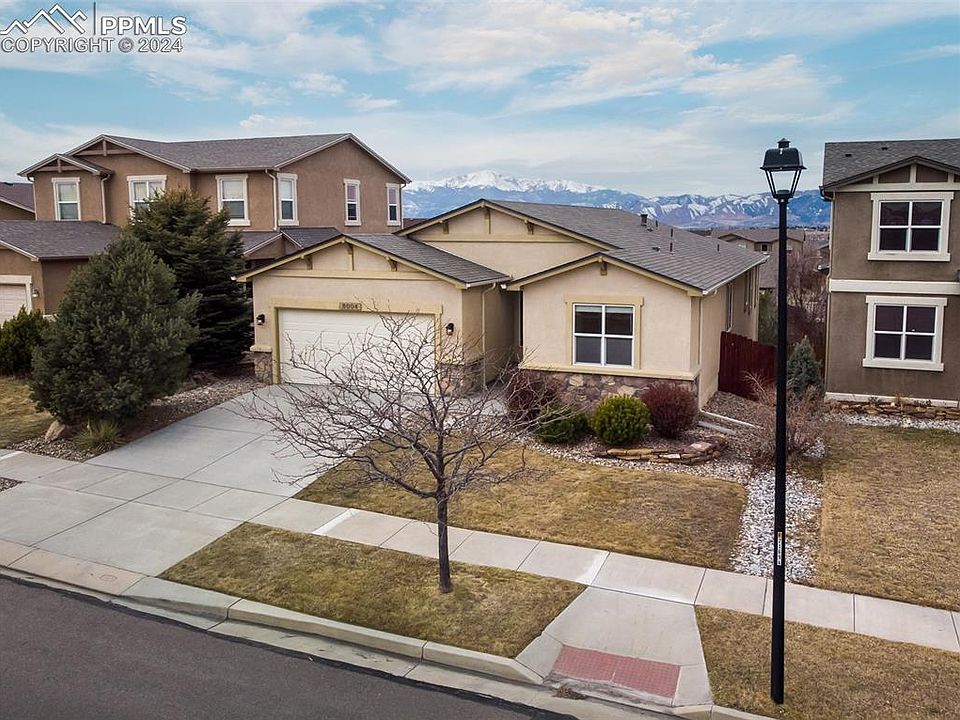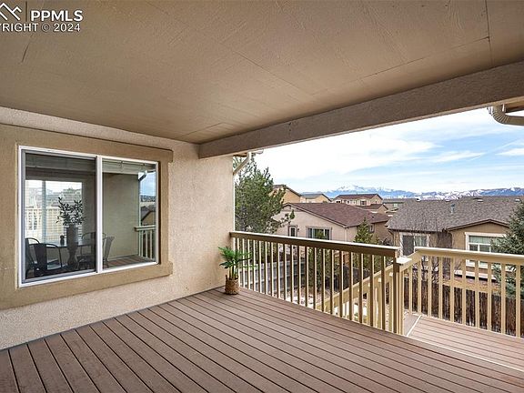 This Colorado Springs home, nestled in the desirable Cumbre Vista Neighborhood, offers stunning mountain views and sits conveniently across from a park. Its stucco siding adds durability and aesthetic appeal. The covered deck provides a perfect spot to enjoy the scenery. Inside, the spacious layout includes four bedrooms plus an office/flex space and three bathrooms, offering ample room for living and working. The kitchen features a gas stove and solid surface countertops. Wood floors grace the main level, adding warmth and charm. The walk-out basement offers additional living space and customization potential. A two-car garage provides parking and storage convenience. This property's location is ideal, with proximity to top-rated schools, shopping, dining, and hospitals, ensuring convenience and accessibility. Overall, this home epitomizes comfortable Colorado living, blending style, functionality, and breathtaking views. This home is truly one of Colorado's Finest.