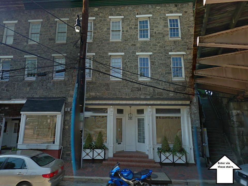 3rd floor apartment located in scenic Historic Old Ellicott City. Coffee shops, restaurants, local retail stores, Patapsco River with running/walking paths and free parking right outside your doorsteps. Easy access to I95, I 70 and Rte. 29. The Roger Carter Center is 0.5 miles away with pool, weight room, basketball, volleyball, and group fitness classes. More info at www.howardcountymd.gov/rccc. Features include: Skylights Spacious Bedroom with Large Closet Large Bath Combined Kitchen/Living Area with Stove, Microwave, Refrigerator and Hardwood Floors Central Air Conditioning Ceiling Fans Laundry Gas & Electric average $70/mo, Water Is Included Smoke Free 500 sq ft. High Speed Internet and Cable TV available Pets welcome with $500 non-refundable pet deposit and additional $10/mo rent. One month security deposit with a year lease, then month-to-month. To qualify, your rent should only be 1/3 of your household gross (before tax) income, or someone cosigns with you. The entrance is up the green stairs to the right of Georgia Grace Cafe, and then to the left. Email: 8004MainStreet_at_gmail.com.