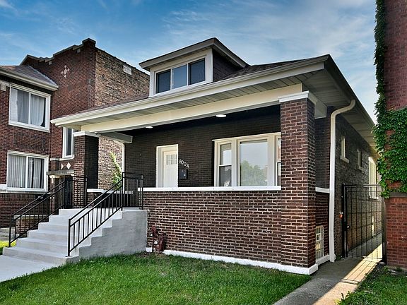 Welcome Home to This Completely Remodeled Jumbo Brick Bungalow! Step onto the inviting large front porch and enter into a spacious, rehabbed home. The living room features large windows that fill the space with natural light, complemented by a charming decorative fireplace. The separate dining room is perfect for entertaining guests. The modern kitchen boasts brand-new cabinets, stunning granite countertops, and brand-new appliances (to be installed). A convenient walk-in pantry with built-in shelving provides additional storage. This home offers three generously sized bedrooms on the main level, along with a completely updated bath featuring ceramic tile. Enjoy the all-season versatility of the 3-season room at the rear of the house. The fully finished basement is ideal for entertainment, with a large recreation room, an even bigger family room, a 4th bedroom, a new full bath, laundry room, and utility room. Recessed lighting enhances the entire lower level, with new flooring throughout the home. The property also includes a detached two-car garage. Located near shopping, public transportation, and expressways (90 & 94), this home provides both comfort and convenience. Schedule your appointment today! Home Warranty Included