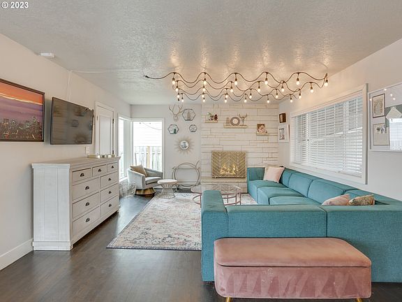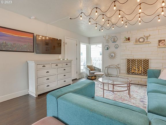 This nicely updated home lives very large! A bright kitchen features updated countertops and tile floor with stainless appliances. Beautiful hardwood floors throughout the dining and family room. Four spacious bedrooms including the primary with attached bathroom, and a handy flex area that could be a sitting area, extended closet or storage. Great fully fenced outdoor areas include covered patios, recently installed turf, and raised beds for the gardener. Easy access to restaurants, freeways and public transportation. This is a great one level home ready for its new owner! [Home Energy Score = 4. HES Report at https://rpt.greenbuildingregistry.com/hes/OR10129863]