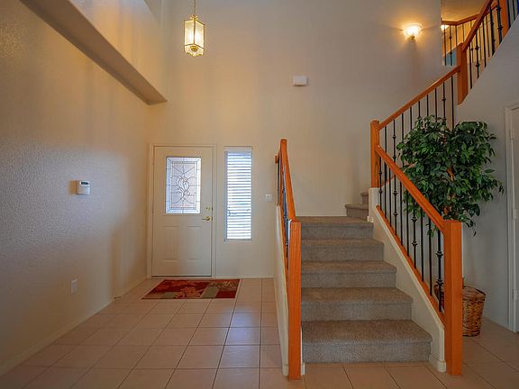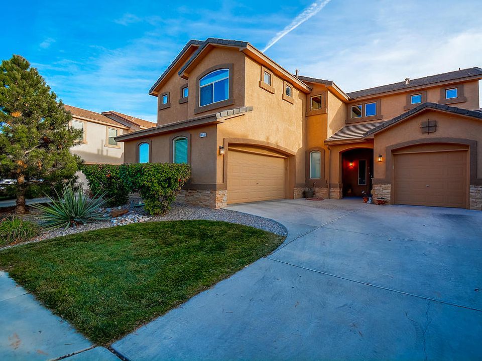 Welcome to this beautiful DR Horton home in Ventana West. This home boasts 2 living areas, a formal dining area as well as an eat in kitchen area and office on the main level. Large family room features a gas fireplace, surround sound, as well as built in shelving. Large kitchen features abundant storage and is nicely appointed with corian counters and stainless steel appliances. Upstairs you'll find a spacious loft which makes for an additional living space or game room. Oversized master suite with sitting area, mstr bath with jetted soaking tub, and large walk-in closet. New carpet just installed throughout. You'll want to spend lots of time in your private backyard enjoying the lush green lawn and mature trees. Large covered patio and a sand box too, a lovely property in and out.