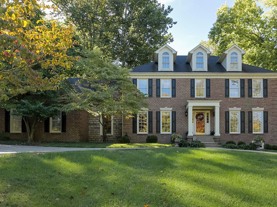 STATELY Briar Hill Estates stunner! So much to rave about here in this 4 BR, 2.5 BTH, 4000 sqft, 2 story! Hardwood flooring throughout most of the first floor & upstairs hallway. Granite countertops in the Eat-in kitchen with a center island, custom cabinetry, tile backsplash and breakfast area. Open to the Eat-in Kitchen, the Family Room and Living Room flow together for great entertaining space. The Family Room has a wood burning fireplace and both spaces have beautiful moldings and hardwood flooring. . Adjacent to the Eat-in Kitchen is the Formal Dining Room which boasts a trey ceiling with dental and crown molding, wainscoting and tons of wall space for furniture. Also on the first floor is a private office, a half bath and a laundry. Upstairs, the Master Suite features a vaulted Master Bath that has double vanity, whirlpool, private commode & separate shower. The Master Closet is to DIE FOR with separate walk-in attic access for additional storage. 3 additional BRs on the 2nd floor are each a generous size with nice closets and they share a full hall bath. The lower level features an oversized Family Room/Media Room and a separate Recreation Room/Exercise Room PLUS a storage room. As if that wasn't enough, IT ONLY GETS BETTER OUTSIDE! The outdoor living space makes this a truly special home. Stamped concrete walkways and curved patios lead to an open, covered rear porch that feels like an outdoor Family Room. To top it off, all this looks out over a 1 acre treed yard with gorgeous landscaping and privacy from your neighbors. TRULY STUNNING. There is a circular driveway in the front plus a pad on the left to the attached 3 CAR GARAGE! Seller has done many updates to this home – roof, furnace, AC, outdoor living space, appliances, etc. ONE YEAR H S A WARRANTY. Award winning OLDHAM COUNTY SCHOOLS!