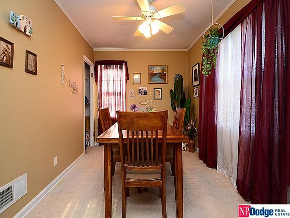 Darling starter home in the heart of Ralston. Story plus with one bedroom on main and 2nd bedroom is dining room. 3rd bedroom is upstairs dormer room. Wood floors under carpet. White kitchen all appliances to stay, washer/dryer to stay. Aluminum siding. Extra parking pad. Nice size wood fenced, large yard & paved alley. Above ground pool is negotiable. Ideal location.