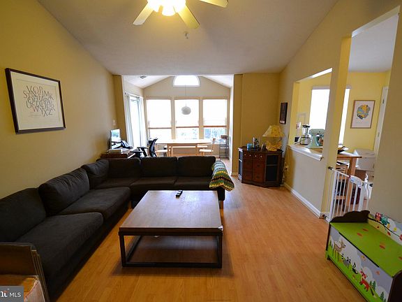 Gorgeous penthouse level condo in McDonogh Township, ready for a new owner! Open concept floor plan with huge living room area and vaulted ceilings. The spacious kitchen can easily host an island or dinner table. Enjoy your morning coffee in the breakfast room which could also be used as a separate workspace or play area. Step out on your private patio, large enough for a small table and chairs.Larger bedroom suite features a walk-in closet and full private bath and vaulted ceilings as well. The 2nd bedroom, close to the second full bathroom, is large enough to comfortably fit a queen bed and furniture. Separate laundry room with additional storage and shelving. Close to Wegmans, Foundry Row, major highways & Metro. Secure building.
