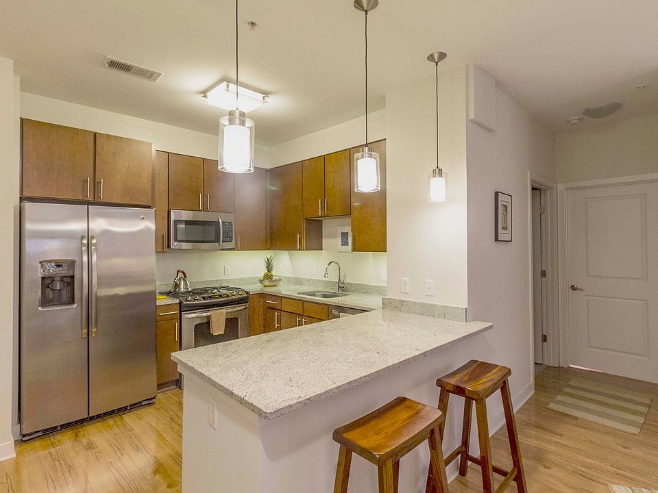 Modern, open-concept condo in downtown Silver Spring 1 mile from Metro, around the corner from NOAH. Near parks, shopping and entertainment. Granite counter tops, stainless steel, W/D stack, and gas stove. 2 spacious full bathrooms. Walk-in closet, large windows and ample storage. Rooftop lounge, grill, patio, and gym. Pet-friendly. Parking available at $75 a month. FHA/VA approved.