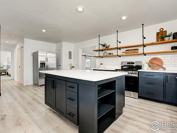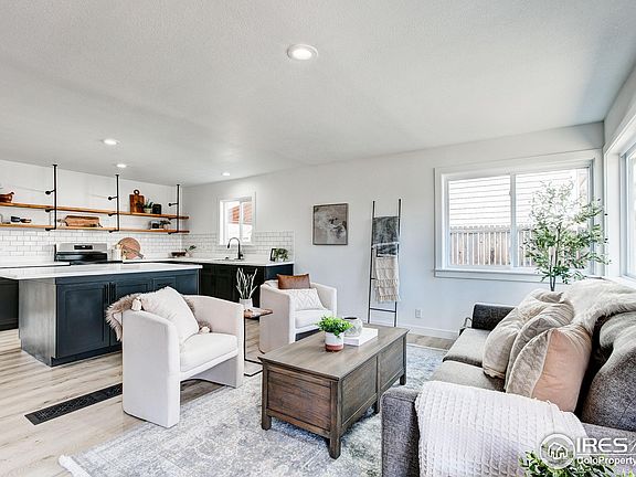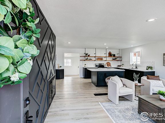 Charming Home in the heart of Wellington with all NEW WINDOWS! This lovely property has has been fully updated to save the next owner thousands in renovation costs! Updates include fresh modern paint colors, brand new flooring, gorgeous black cabinetry, new appliances and quartz countertops in kitchen and stylish new bathroom fixtures. You'll fall in love with the statement wall in living room that houses a wood burning fireplace and the suspended shelf in kitchen. Unique layout can suite all sorts of needs and the numerous windows create a bright, cheerful ambiance. Boasting two living areas, separate dining room, 4 bedrooms and full bath. Huge, fenced backyard with adorable playhouse or extra storage and lots of space for entertaining. NO HOA! Conveniently located near parks & schools with easy access to I-25. This gem could be all yours!