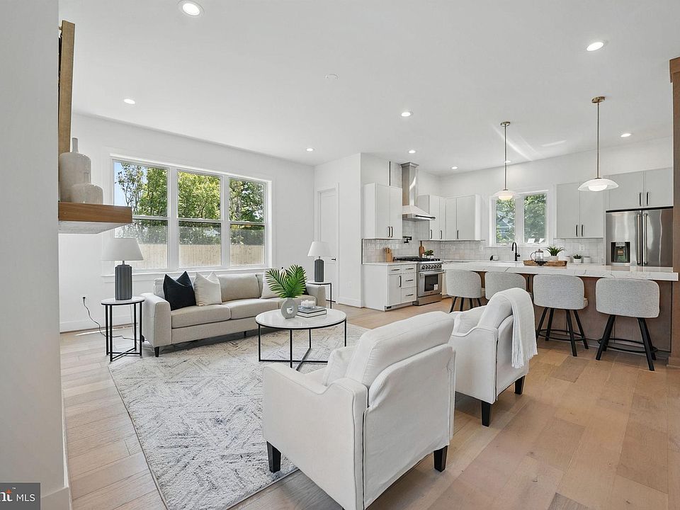 Step into this exquisite 6-bedroom, 6-bathroom residence, offering 4,444 square feet of luxurious living space and a front-load 1-car garage. Thoughtfully designed for comfort, charm, and effortless entertaining, this home sits on a flat, 0.21-acre lot with a fully fenced private backyard—ideal for weekend barbecues, family gatherings, or simply enjoying the outdoors. Inside, the heart of the home is a chef’s dream kitchen, featuring premium stainless steel Thor appliances, including a 36” gas range with pot filler, custom range hood, built-in microwave, and a 36” French door refrigerator. The expansive 8-foot island and elegant Calcatta Cambria quartz countertops add both functionality and style. Warmth and sophistication radiate throughout, with rich 7.5” European white oak floors and soaring 10-foot ceilings. The formal dining room includes a wet bar and beverage center—perfect for hosting. The light-filled family room boasts a gas fireplace with a custom white oak mantel, offering a cozy centerpiece for relaxing or entertaining. Upstairs, the expansive owner’s suite is a private retreat, complete with a spa-like bath featuring a shower room with soaking tub, dual vanities, and a generous walk-in closet. Three additional en-suite bedrooms—each with walk-in closets—offer comfort and privacy for family or guests. A conveniently located upper-level laundry room adds to the home’s practicality. The third floor loft offers a flexible space ideal for work or play. This level also includes an additional bedroom and full bathroom, making it perfect for guests. Crafted with longevity and quality in mind, this home features premium finishes throughout, dual-zoned HVAC systems for year-round comfort, a 75-gallon gas water heater, energy-efficient Andersen windows, and Cat5 wiring—delivering modern convenience and lasting peace of mind.