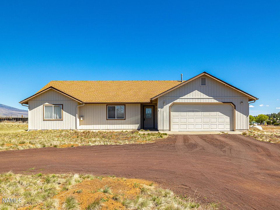 Situated on 2.5 acres and priced below the comps this split floor plan, three bedroom, two bath is located in a quiet neighborhood with views of San Francisco Peaks and Sunset Crater. Just a short distance to the west is access to the Forest Service. The