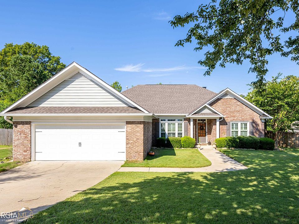 Walk into this stunning 4 bed 3 bath all brick house with an open concept and instantly experience feeling at home in luxury! Vaulted ceilings, endless natural light, built in surround sound make this living room where you want to be! Kitchen provides tons of countertop space and gas stove, perfect for the passionate cook! Oversized primary bedroom has access to back porch. Primary bath offers his/her closets, dual sink vanity, AND huge walk in shower with dual shower controls as well as waterfall shower head! Across the living room you will find 2 more bedrooms and a 4th bedroom with personal full bathroom! Perfect for visiting family or MIL suite. Shutters throughout home provide shade and style. Continue to be impressed as you walk out the back sliding door on to your large covered deck! Exterior speakers hook up to internal system providing flawless audio so transitioning the party inside to outside is a breeze! Well manicured yard is already set up with irrigation system as well!