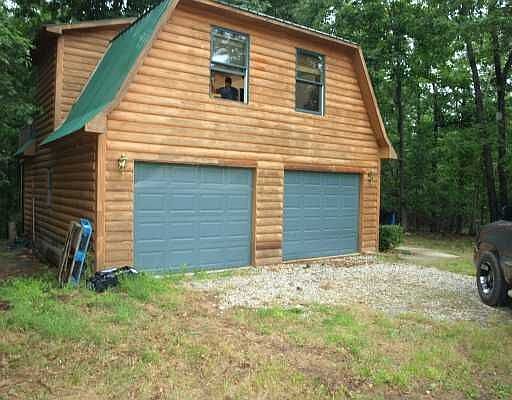 CABIN NESTLED ON 43 ACRES OF WOODS WITH LIVING AREA ABOVE 2 CAR GARAGE. FULL BATH, GALLEY KITCHEN, OPEN LIVING SPACE, AFFORDS MANY POSSIBILITES FOR WEEKEND GETAWAY OR FULL-TIME CABIN LIFE. EASY WALK DOWN TO THE LAKE, 1 SLIP IN PRIVATE BOAT DOCK CONVEYS