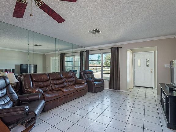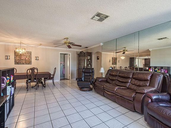 This classic 3/2/2 in Port Richey is ready for new owners! Space for everyone in this modified open concept floorplan. From the front entry, you'll notice the extra storage in the foyer and natural light that flows through all of the windows in the home. The family room/dining room combo allows for ample floor space for living and entertaining! The owners have remodeled the kitchen with beautiful espresso cabinets and opened up the kitchen to the living area with the addition of a breakfast bar. The nicely sized Master Bedroom has a private bathroom with a walk in shower, walk in closet, and desk space for all of your design or layout needs. Bedrooms 2 and 3 are roomy enough for queen sized beds and dressers. At the rear of the home, you'll find a generous home office or bonus room area, just off the kitchen. Triple slider doors head out to the screened porch for you to enjoy the Florida weather year round! Inside the 2 car garage, you'll find the attic access, recently replaced Water Heater, and laundry area. A fresh coat of paint on the exterior and interior of this home was completed this year. Call today for your private showing!