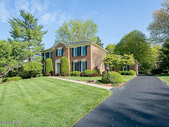 Surrounded by mature & beautiful landscaping, this 2 story brick home sits on a quiet cul-de-sac in the highly desirable Hunting Creek community of Prospect! Just a short walk to Harrods Creek Park where you'll feel a world away exploring the trails or floating down Harrods Creek from Prospect's only free access, easy-entry launch into Harrods Creek. Hunting Creek offers its residents access to Hunting Creek Country Club with golf & social memberships available, pool & tennis. A large entry foyer welcomes you into the home where you'll find a living room & dining room flanking the foyer. The family room features a fireplace with built-in bookcases, large windows bringing in lots of natural light & access to the large patio. The spacious eat-in kitchen features a center island with