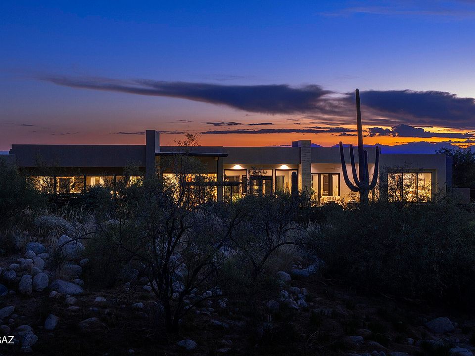 Situated on a commanding view lot within the exclusive Pima Gardens secondary gate of Pima Canyon, this exclusive property exemplifies timeless architecture, juxtaposed against modern interior design, featuring generously proportioned rooms, paired with a thoughtful floor plan, perfect for entertaining, as well as casual everyday living. Upon approach one is received by a private entry courtyard, featuring a cohort of lush vegetation that celebrates the natural beauty encompassing this residence. As an introduction to the home's open floor plan concept, the entry foyer sets the stage for the innovative design that unfolds throughout the property, with walls of windows that frame the panoramic mountain views. The home's interior features the highest quality materials that allow the elements of light, form, and texture to converge in a narrative of timeless elegance.