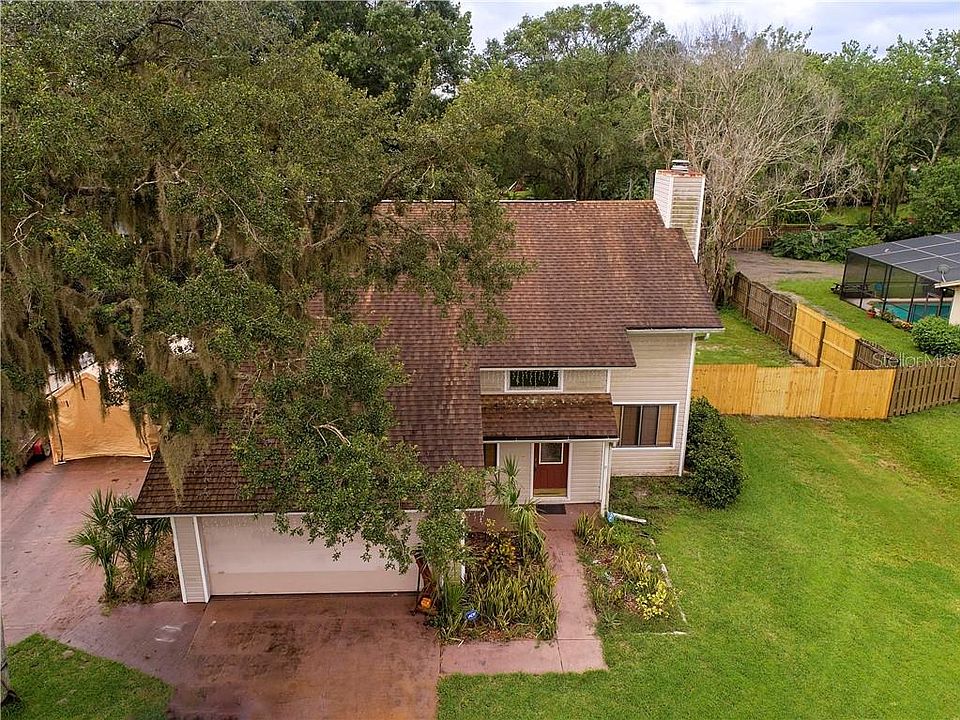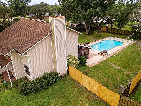 Come live the Dream of your Florida lifestyle in this nature lovers retreat, where a family can really spread its wings. This lovely 1795 sq foot home features Bamboo flooring, Volume ceilings and an park-like back yard. ~ Enter the Grand Foyer to a vaulted 24''celing, this home features a large chefs kitchen with eating bar and open view to the Great Dining & Living room area, accented by a majestic River Rock fireplace. French doors lead to a 24'' screened lanai overlooking the most wonderful Eden-esque backyard.... Lovely mature trees frame this over 1/4 acre space with an oversized entertaining pool... Its true "joie de vivre" out here. ~ Upstairs the home has 2 large bedrooms rooms, one with a large walk-in closet and the other has a double bi-fold closet. The loft acts a third room or den and could easily be closed off. A large central main bath serves this upper level. ~ The Oversized Master bedroom below has a large walk-in closet and ensuite master bath. ~ Outdoors a tandem oversized parking pad has room for RV''s or boats, not an issue in this friendly neighborhood. This home has a new hot water tank, a dedicated laundry alcove and a dual-windowed two car garage. ~ The fully fenced backyard is a study in meditation. Privacy and space abound and the greenery is superlative ! A Volleyball pool (deep in the middle - shallow on both ends) gives room for everyone to swim and play. A tree house, swing set, oversized pool deck and large screened & Vaulted roofed patio completes this outdoor dream....