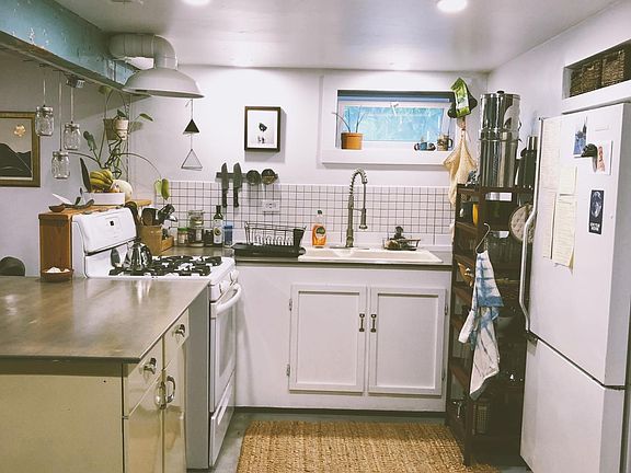 Bright and spacious basement one bedroom unfurnished apartment with open floor plan and big living room bonus space in the Foster/Powell neighborhood. Available now! Short walk to Mt. Scott park and community center and close to Woodstock Blvd shops and restaurants, Foster Street, Lents neighborhood, MAX and bus line, and 205 entrance. Looking for a peaceful renter to join our quiet artist community. Two artists/designers and the sweetest kiddo live in the upstairs apartment and two quiet folk musicians live in the garage apartment in back. If it sounds like a good fit, let us know a little about yourself and what you're looking for in a living situation and send along three references. Thanks! 1 bdrm/1bath $1100/month, all utilities included (internet too) First and last month's rent due for move in Year lease Unfurnished (photos are from previous tenant) Private entrance Easy street parking Shared laundry Fenced in yard with gardening options Big walk in shower Friendly neighbors:) All Utilities included in rent, even internet! No smoking inside Street parking