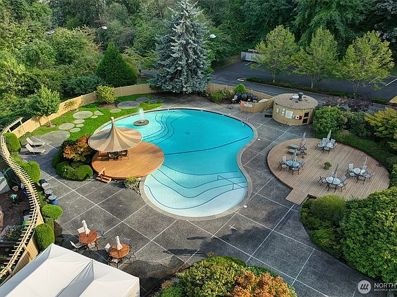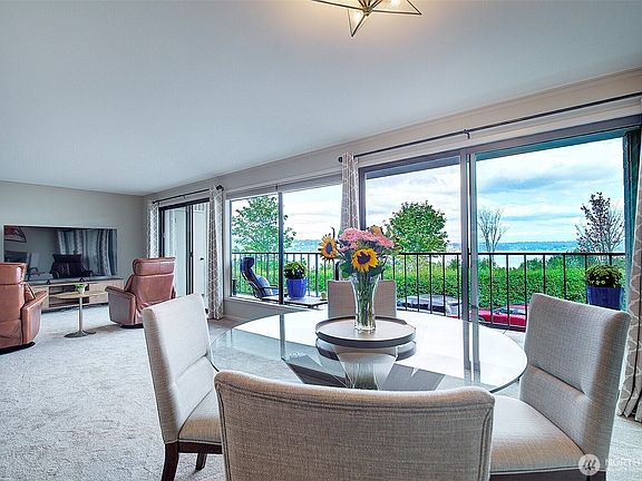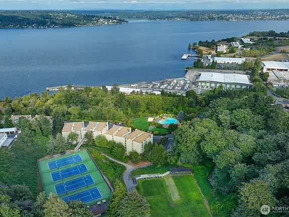Wake up to panoramic Lake Washington and mountain views in a home designed for easy living and entertaining. Sunlight pours through walls of windows into the open living and dining spaces, anchored by a cozy gas fireplace. Cook with ease in the modern kitchen with brand-new stainless appliances, then unwind in your spacious primary bedroom with updated ensuite. The flexible second bedroom with Murphy bed transforms seamlessly for guests or a home office. Onsite you will enjoy the pool, sauna, tennis, driving range, & lush grounds just outside your door. Complex also has bike storage and a wood-shop! Community room is where residents gather for happy hour. Just steps to the Burke-Gilman Trail & Magnuson Park! Quick commute to UW & Downtown.