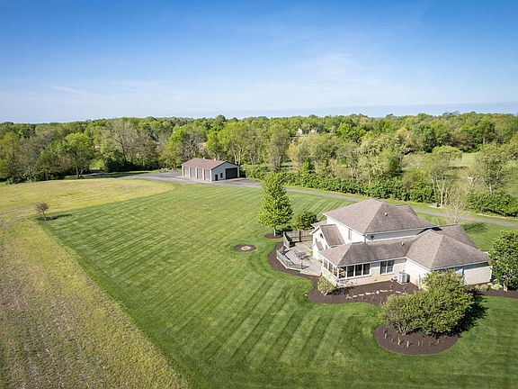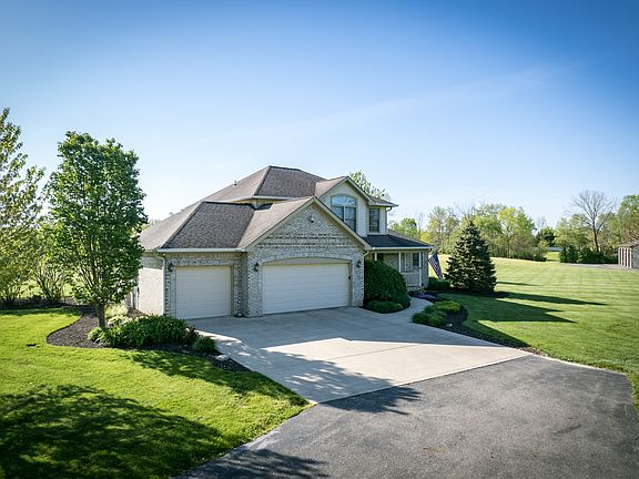 Beautiful, unique opportunity to own a 30+/- acre secluded estate with an ideal location! This 3 bed/2.5 bath, 2426 sq ft, custom-built estate is located in the NW corner of Shelby county. This property is just a couple of miles south of New Palestine and less than 1.5 miles to the nearest exit on I74. Quick I74 access creates an ideal opportunity for those families needing to be relatively close to Indianapolis (approximately 8 miles) or other nearby towns like Shelbyville. The property has approx 25 acres of income-producing tillable land (which could be used for potential development), a pond, and 2 insulated pole barns. The north barn is 40x60 wired for 220 w panel installed, 5-12ft overhead doors, and insulated walls. The south barn is 30x50 w/220 service, car lift, compressor, and insulated walls. The custom brick home provides a +1000 sq ft attached 3 car garage, 1st-floor owners suite, & the upstairs office could easily be converted to a 4th bedroom if desired. The estate also is equipped with a "whole house sound system" & direct hardwired fire & theft alarm system. Enjoy your morning coffee or dinner with friends and family on the 800 sq ft deck and screened-in back patio with scenic views. The property has been professionally plated by a landscape architect and perennial, ornamental, and shade trees have been planted for maximum seasonal beauty. This estate truly provides a unique combination of location, layout, & space! Contact Nick George for the most accurate information and showings