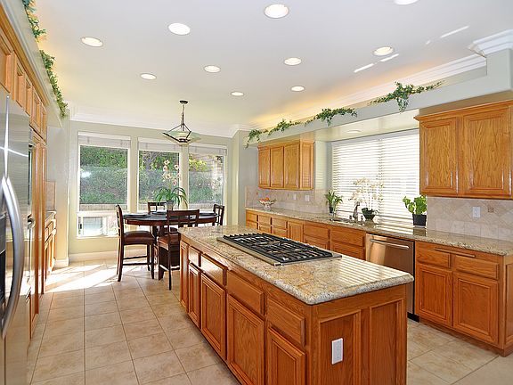 Lovely home nestled in the Santiago Hills, near Peters Canyon Regional Park* Fabulous versatile open flr plan, volume ceilings, expansive windows & French doors* 5 spacious bedrooms, a convenient main floor bedroom/office/playroom & full bath* Kitchen features lrg center island, NEW stainless steel appliances* Kitchenaid gas 5 burner cook top, double ovens, dishwasher & microwave* High-end granite counters & tumbled travertine backsplash* Lrg family room w/brick facade fireplace, custom mantle and ceramic logs* Light & bright living room w/volume ceilings & spacious formal dining room, French doors w/invisible screens offer views of the lushly landscaped yard* Generous master ste w/cathedral ceilings, his & hers separate mirrored walk-in closets. Master bath features dual vanity sinks, walk-in shower, oval soaking tub* Main floor laundry room w/sink,ceramic tile floors* Crown molding, wide baseboards, custom paint, security system, wood blinds, new carpeting, marble entry, wine service bar* Lrg private yard w/patio featuring overhead shade structure, custom awnings & grassy area for kids* 3-Car Garage* Fabulous location, steps to Peters Canyon hiking & biking trails, parks & great schools. Enjoy picnics w/family & friends at nearby Irvine Regional Park*