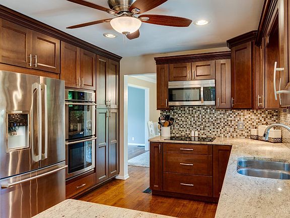 - Features: Pantry, Counter Bar, Eat-in Kitchen, Window Treatment, Wood Cabinets, Wood Floor, Marble/Granite/Slate