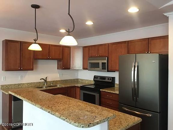 Contemporary South Anchorage townhouse for rent. 3 bedrooms, 2 bathrooms. Vaulted ceilings, granite counters, stainless steel appliances, gas fireplace and an open floor plan. Washer and dryer included. 2 car attached garage.