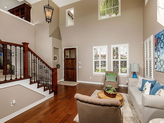 Absolutely gorgeous home perfectly situated at the end of a wonderful cul de sac in highly desirable La Costa Valley. Fabulous lot boasts an expansive grassy play area, beautifully designed patio with flagstone accents, stunning fountain, outdoor fireplace, and built in BBQ and bar. The center island kitchen has timeless granite counters, fresh white cabinetry, and stainless steel appliances. The kitchen flows into the family room with stacked stone fireplace. The luxurious master suite has an attached bonus room that makes the perfect home office or gym. Other features of the master suite include a private balcony, soaking tub, dual vanities, and large walk in closet. A bedroom and full bathroom are conveniently located on the first floor. This well appointed home also offers hardwood floors, crown molding, central AC, and a 3 car garage. La Costa Valley residents enjoy The Valley Club with Olympic size pool, soothing spa, lighted tennis courts, fitness center, and recreation room. Walking trails weave through the streets of La Costa Valley, and there are many pocket parks throughout the community. Students attend top rated Encinitas schools including El Camino Creek Elementary. You are just minutes from delicious restaurants, wonderful shopping, beautiful beaches, and world class golfing. Come live the Southern California lifestyle you’ve always dreamed about!