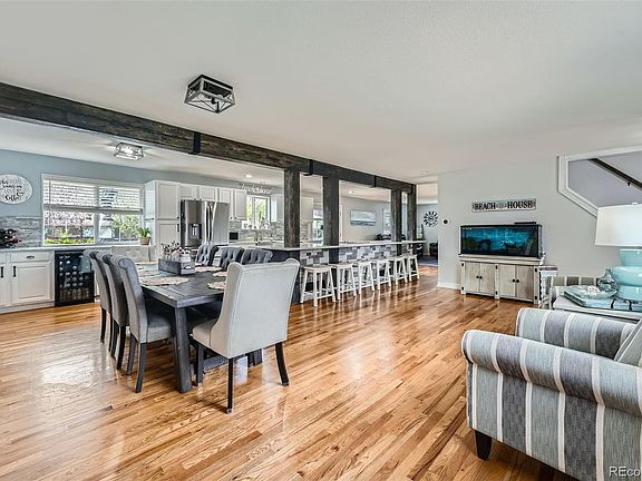 Stunning 3-Bedroom, 4-Bathroom Home with Finished Basement, Tons of Parking/Storage and Outdoor Salt Water Pool! Welcome to this beautifully updated home that blends comfort, functionality, and style. Nestled on a spacious 0.28-acre lot, this 3-bedroom, 4-bathroom home boasts an inviting front porch and a casual open-concept floor plan designed for easy living and entertaining. The main level features a bright Living Room and Dining Room that flow seamlessly into the updated chef’s Kitchen where custom cabinetry, Quartz countertops, tile backsplash, stainless steel appliances, pantry, beverage refrigerator and an island/breakfast bar take center stage. Whether you’re entertaining, hosting family gatherings or cooking up a quick meal, this Kitchen offers everything you need! Spacious Family Room with a cozy fireplace, main-level Laundry and a convenient 1/2 Bathroom complete the space. Upstairs you’ll find 3 generously sized Bedrooms, including a luxurious Primary Suite featuring a ceiling fan, walk-in closet and updated 5-piece Bathroom with a free standing soaking tub, dual vessel sinks and a frameless glass shower. An additional updated Full Bathroom with dual vanity serves the secondary Bedrooms. The Finished Basement offers 704 SF of valuable living space with a Full Bathroom plus Bonus Room with a fireplace offering the flexibility for a home theater, office, home gym or playroom. Enjoy year-round comfort with a newer AC and furnace. Outside, the private fenced yard offers lush gardens, storage shed, multiple patio areas and a saltwater pool—creating the ultimate backyard retreat for entertaining or casual outdoor living! Car enthusiasts and adventurers will appreciate the 2-car Attached Garage, 4-car Detached Garage plus covered RV parking. Excellent Littleton location with quick access to CO-470, Chatfield State Park, shopping, dining, parks and all the area offers. This home is a rare find offering space, style and superb convenience!