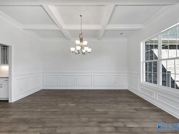 - Features: 10’ + Ceiling, Crown Molding, Wood Floor, Coffered Ceiling(s), Wainscoting