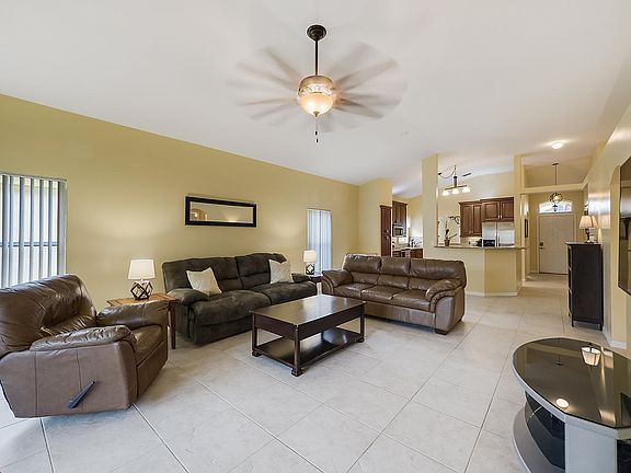 PERFECT-MOVE-IN READY UPGRADED 3 bedroom home with LARGE YARD AND LAKE VIEW. This home has a formal dining room, beautiful remodeled kitchen with 42'' solid cherry cabinets that are soft close, tumbled marble backsplash, stainless steel appliances, granite counters, pantry with pullouts. 24'' tile throughout home.(No Carpet). Large screened lanai and patio overlook the fenced in backyard and lake with fountain. Split bedroom plan with Master at back of home w/ lake views and huge walk in closet. Interior laundry room with newer Whirlpool W/D 2012. AC replaced 2014. Brick paver driveway lead to a 2 car garage. Community amenities include tennis courts, handball courts, volleyball net, community pool and spa & fitness center. Conveniently located just off Military trail. Great Find!