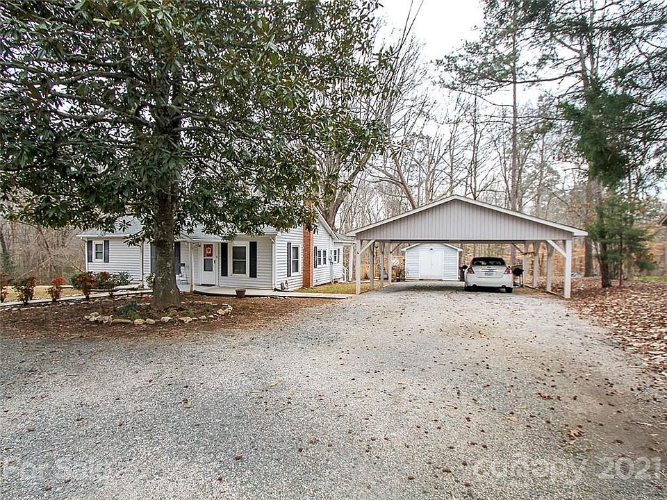 This 1.74 wooded acre lot will give you the space you desire, yet conveniently close to downtown Waxhaws main street to enjoy shopping, dining & more! Property offers a double carport, wired outbuilding with deck, circular driveway, and privacy with a wooded back that has a creek running through. Charming bungalow features 2/1, living room with dual ceiling fans and carpeting, kitchen with raised panel cabinets, ceiling fan, & white appliances. Master bedroom with ceiling fan and carpeting, and a second bedroom with lots of natural light can be used as flex space if desired. Enjoy the nature views, morning coffee or a good book from the back deck overlooking the wooded area. Great starter home where you can add your own personal touch!