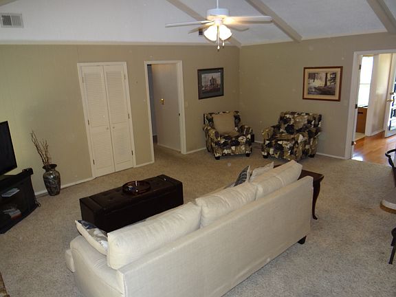 Perfect 4 bdrm plan. Master suite in back, mother-in-law suite on other side. Formal living room, formal dining room. Cathedral ceiling in den with fireplace. Updated kitchen with new solid surface counter tops. Open, light, airy, level lot. Huge patio area. Detached building w/electric for office/workshop. Many updates. Very neat and clean. Great neighborhood!