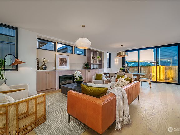 Presenting cutting edge new construction built w/ elegant proportions, gorgeous finishes, & exceptional detailing tailored around a combination of Scandinavian New Modern & Japandi design. Mahogany decking leads to the phenomenal great room w/ wide plank floors, large windows, custom fireplace, spacious dining, & a world-class kitchen! Ascend to the lovely & private primary suite w/ 5-piece spa bath & generous walk-in closet. There's 2 more bedrooms, a full bath, & a proper laundry room. The top floor Skylounge has spectacular Mt. Rainier, Cascade, & Olympic Mountain views, a wet bar, home theater, rec room, guest bedroom, 3/4 bath, & lots of storage. A 1- bed MIL/DADU, 2-car garage, & lovely landscaping complete this unique opportunity!!
