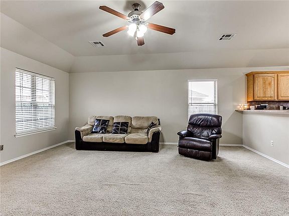 Fresh on the market! Quick commute to Tinker! Open Concept! This home is move in ready with fresh paint throughout. 3 bedrooms and 2 full baths. Heat and Air System new in 2019, New Roof in 2018, New Dishwasher and Microwave in 2018. Stackable Washer and Dryer can stay if buyer chooses. Backyard is fully fenced and the patio is covered to enjoy your backyard! Please Contact Me or Your Realtor for Virtual Tour Link!