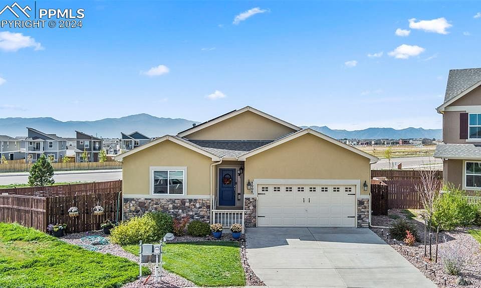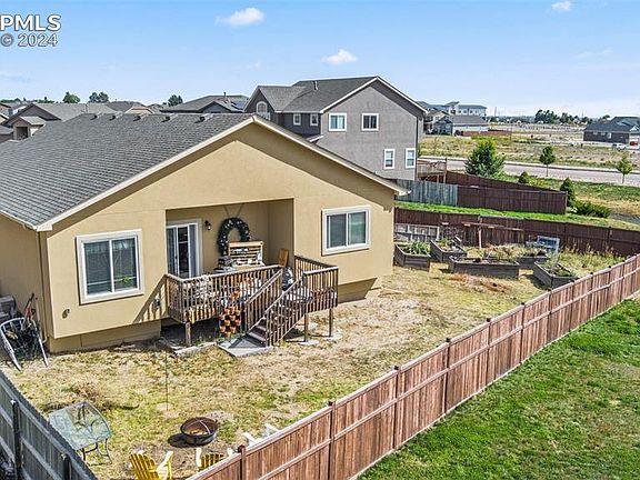 Welcome to this exquisite ranch-style home situated on the northeast side of Colorado Springs. This stunning abode offers an impressive amount of living space, complete with 4 bedrooms, 3 bathrooms, and a 2-car garage, providing both comfort and style. As you step inside, you'll immediately be captivated by the timeless beauty of hardwood flooring that graces the entire main floor. The main level boasts an ADA-compliant bench in one bathroom, ensuring convenience and accessibility. The heart of this home lies in its well-appointed kitchen, featuring a custom backsplash that adds a touch of sophistication. The pantry is thoughtfully equipped with custom shelving, providing optimal organization for all your culinary needs. Retreat to the primary bedroom, which is prewired for a ceiling fan, and indulge in luxurious touches throughout. The custom chandelier exudes elegance, while the adjoining 5-piece bathroom offers a serene jacuzzi tub and custom wood storage, creating the perfect oasis for relaxation and unwinding. The primary bedroom also boasts a spacious walk-in closet with custom shelving, ensuring ample space for all your wardrobe essentials. Convenience continues with the laundry space, which features custom shelving to keep your laundry area tidy and organized. Descend into the basement and discover a convenient kitchenette, providing the perfect space for entertaining or hosting guests. The property is prewired for a hot tub and has a propane hookup for a grill ensuring that outdoor cooking and entertaining are a breeze. Additionally, five raised garden beds eagerly await your green thumb.