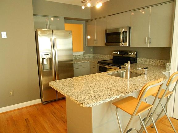 GREAT 3 BR TOWNHOUSE!! *2 Full 2 Half Bath* *Excellent condition* Large LR w/ fireplace opens to private deck, Separate DR. Hardwood floors throughout! *Fresh paint and sparkling clean* *LARGE SUNNY Kitchen w/ bay window* Updated appliances, granite counters, breakfast bar and plenty of room for table and chairs! This large kitchen is so unique and pretty! *AWESOME MASTER SUITE* w/ large bath and walk-in closet! Bedrooms have cathedral ceilings! Large finished basement w/ walk-out to peaceful yard! **Wired for an electric vehicle** AVAILABLE NOW
