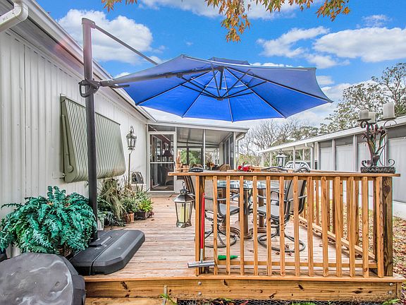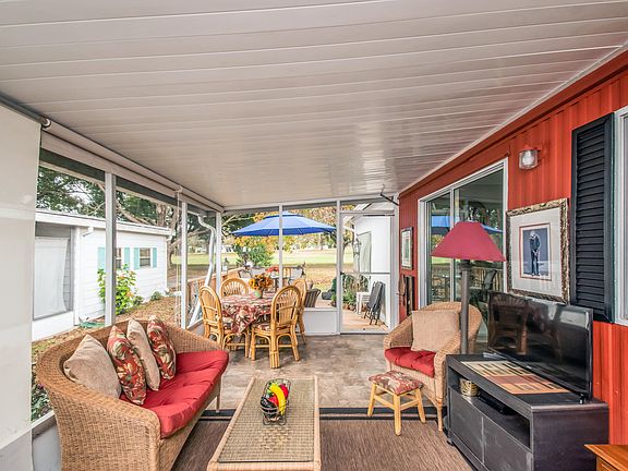 Light, bright, FULLY FURNISHED and BEAUTIFULLY UPDATED GOLF COURSE HOME with a VIEW OF #14 GREEN from NEW WOODEN DECK! This meticulously maintained home features a SPACIOUS, RENOVATED, ISLAND KITCHEN w/NEARLY NEW APPLIANCES. Laminate and carpet floors, LARGE SCREENED LANAI and FRONT PORCH, utility room and GOLF CART GARAGE! New A/C, New Vapor Barrier 2019, New screen room, new deck off back. Located in popular 55+ community where you OWN YOUR OWN LAND. Community amenities include pickleball, tennis, heated pool, horseshoes, bocce, community center, and more.