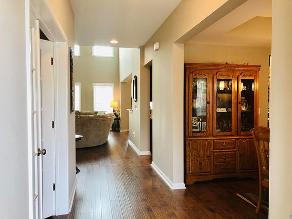 Beautiful home overlooking a serene pond. This home features wide laminate wood floors throughout the main living area. The great room has soaring ceilings w/ palladium windows & custom ceiling fan. The kitchen has staggered kitchen cabinets w/ glass fronts, granite counter tops, double crown molding & stainless steel appliances (gas hook ups in place). A bedroom suite downstairs features a full bath and extra large walk in closet. This is one of my favorite owner suites due to the size of the bedroom and the amazing double walk in closet and large en suite. This home also features a formal dining room, a generous sized office and a sun room all on the first floor. Located walking distance to the play ground & pool and a couple blocks to the New Bowens Elementary school & walking trails.